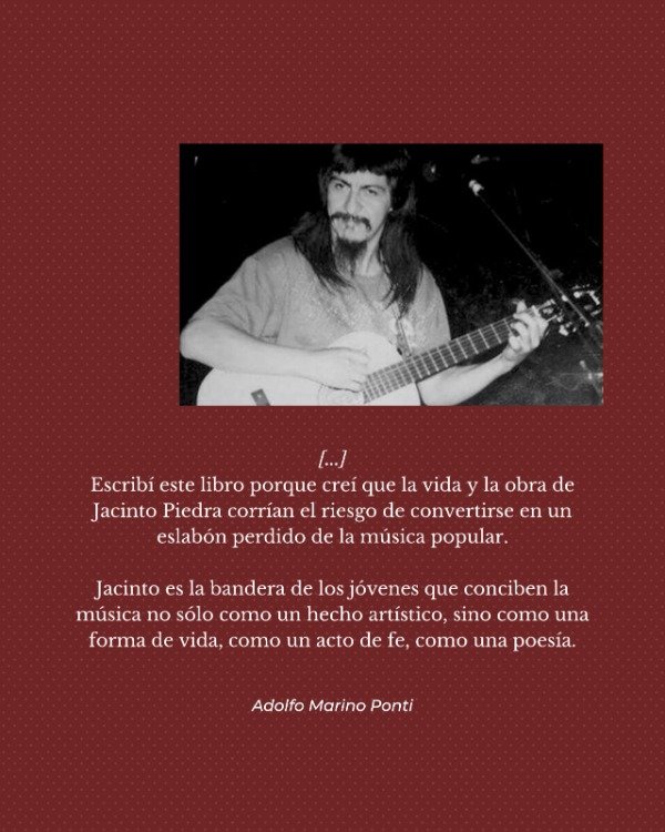 Jacinto Piedra es un mítico personaje de la cultura y del folklore argentino. "Fue un alma apresurada con una voz llena de belleza", supo decir Mercedes Sosa del cantor santiagueño que hacía estremecer el monte con sus coplas. En esta obra, el Bebe Ponti hace un recorrido biográfico de la vida artística y la amistad de Jacinto: sus primeros escenarios, los primeros encuentros, los fuegos que empezaban a crear para iluminar un nuevo camino en la música popular, con el aporte de compañeros del camino en sus voces y fotografías.